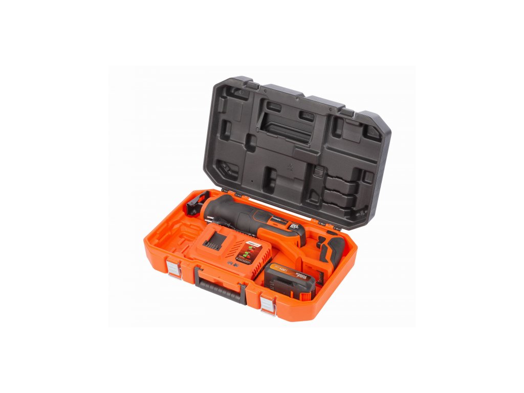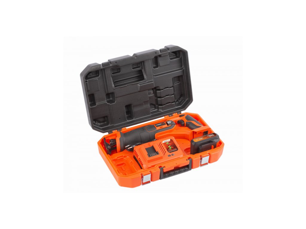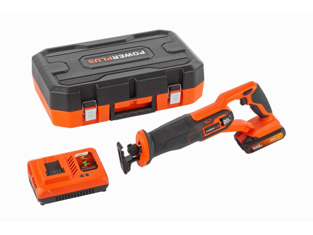 Výhodný SET POWDP25110 Aku ocasové pily, baterie 20V 2Ah Li-Ion, nabíječky a to vše v praktickém kufru. Aku ocasová pila POWERPLUS POWDP25100 20 V se perfektně hodí pro řadu řezacích úkolů, od řezání trubek až po větve na zahradě. Pila má kapacitu řezání 120 mm ve dřevě a 10 mm v oceli. Poskytuje až 2800 řezných pohybů za minutu s vratnou délkou 28 mm. Pila se vyznačuje pohodlným měkkým úchopem a snadno nastavitelnou patkou a úhlem řezu. Díky systému rychlé výměny pilového listu lze pilový list vyměnit mrknutím oka. Pracovní světlo zajišťuje dokonalý výhled na obrobek, a to i na tmavších místech. Použít můžete baterie ze série DUAL POWER o napětí 20V a také i baterie o napětí 40V. Použití 40V baterie zajišťuje ještě delší dobu chodu stroje ve srovnání s 20V verzí.