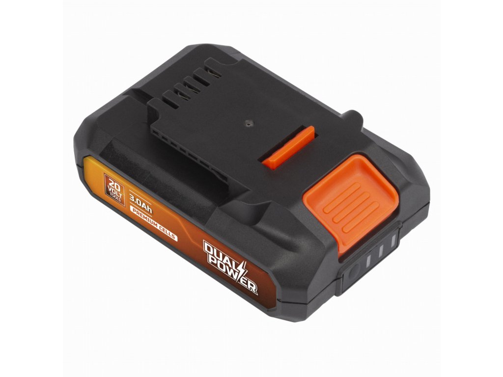 Tato baterie o napětí 20V je kompatibilní se všemi 20V stroji z řady DUAL POWER, a to jak ručním, tak i zahradním nářadím. Má kapacitu 3 Ah a je osazena prémiovými články. 3 LED indikátory vám umožní zkontrolovat zbývající energii baterie, abyste věděli, kdy je třeba ji nabít.