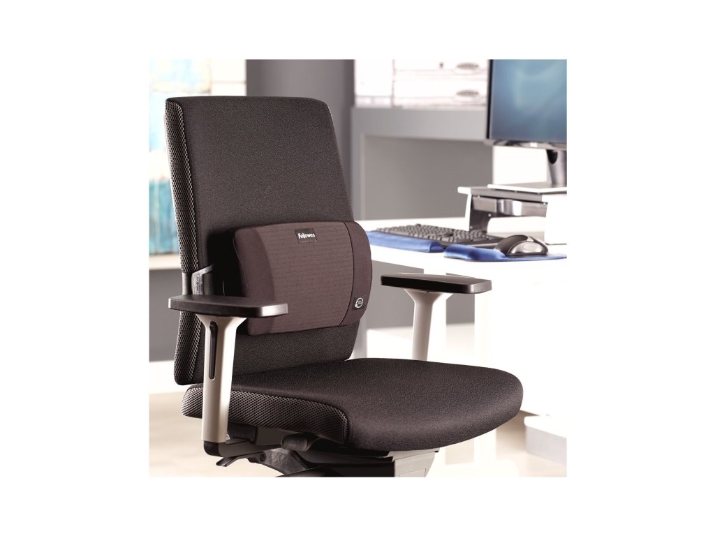 Bederní opěrka zajišťuje podepření páteře pro správné a pohodlné sezení na jakékoliv židli či křeslu. Snižuje napětí svalů a tím pomáhá předcházet problémům s páteří a nepříjemným bolestem zad. Vhodné do kanceláře, auta i domácnosti.