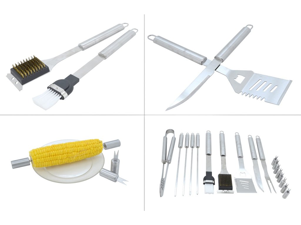 Sada obsahuje veškeré nástroje pro přípravu nejrůznějších pokrmů, ale i následnou údržbu grilu. Veškeré nástroje jsou navíc kvalitně zpracovány z nerezové oceli.