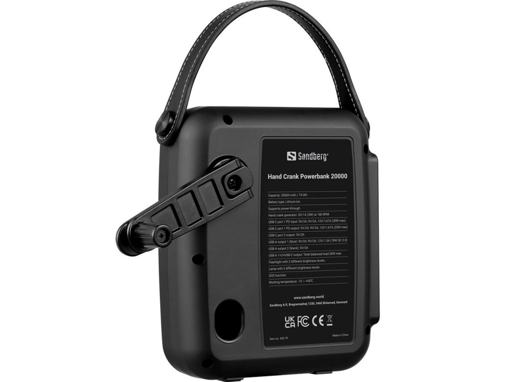 Sandberg Hand Crank Powerbank 20000 mAh vám poskytne velkou kapacitu baterie na cestách pro nabíjení všech vašich mobilních zařízení.