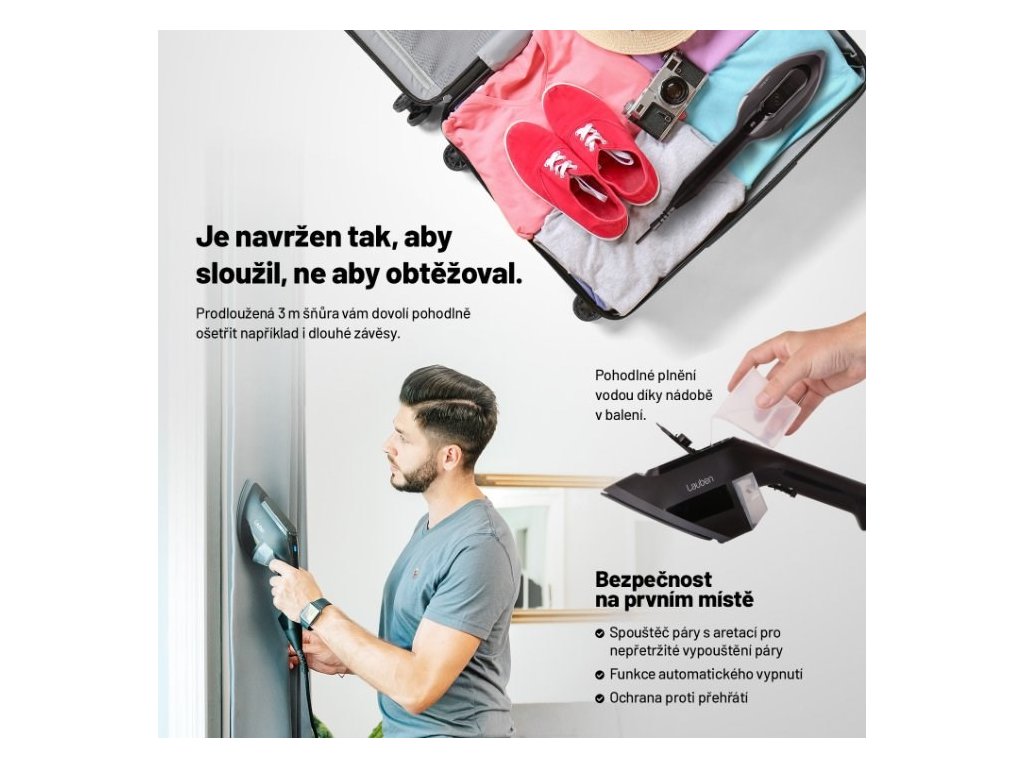 Také se po odchodu několikrát vracíte a kontrolujete, že je žehlička vypnutá? Buďte v klidu, pokud Lauben napařovač zapomenete vypnout, učiní tak po 8 minutách sám.