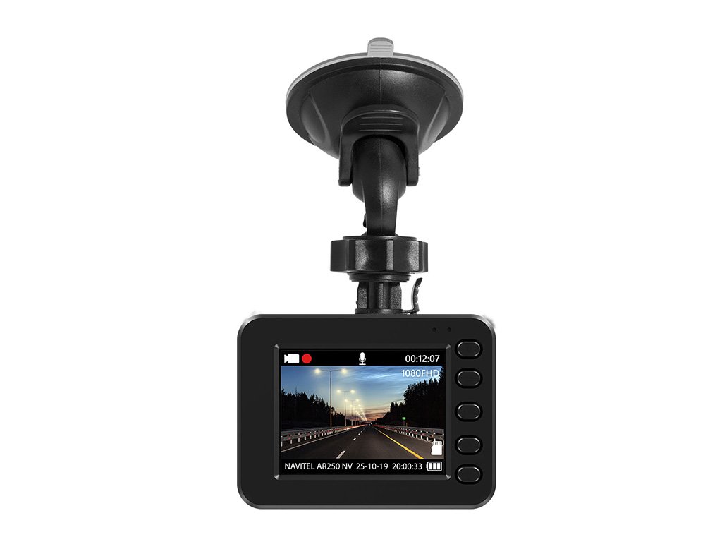 NAVITEL AR250 NV bude kdykoli Vaším spolehlivým pomocníkem. Kamera nahrává video ve vysokém rozlišení (1920x1080) a má pozorovací úhel 140°, což umožňuje záznam široké části vozovky před autem, včetně vedlejších pruhů a silnic.