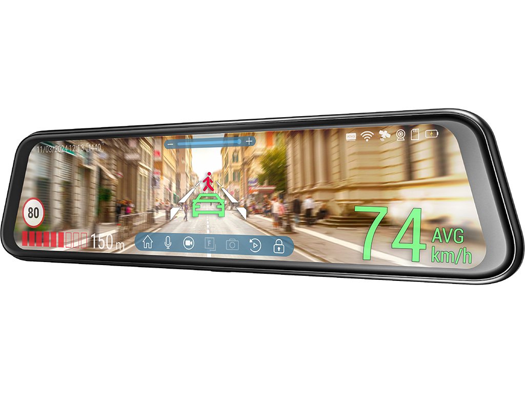NAVITEL MR750 SMART je celoobrazovková 2K palubní kamera zasazená do ergonomického zpětného zrcátka dodávaná s přídavnou kamerou a vestavěným Wi-Fi modulem. Jeho kapacitní dotyková obrazovka zajišťuje citlivé a rychlé ovládání zařízení, zatímco ADAS a GPS informátor pomáhají řidiči na cestách. Už samotná Full-HD kamera je velkým pomocníkem v kontroverzních situacích. Zde se jedná o celý balíček skvělých funkcí.