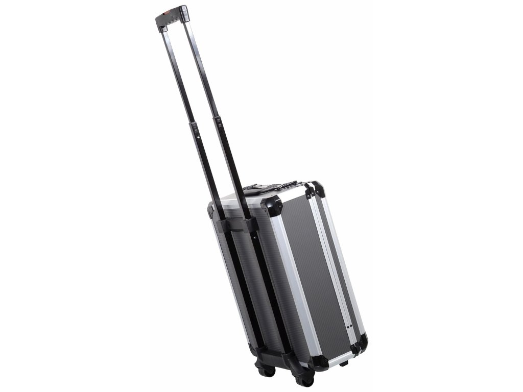 Kufřík je vybaven teleskopickým úchytem a kolečky, díky kterým je manipulace s celou sadou nářadí velice snadná.