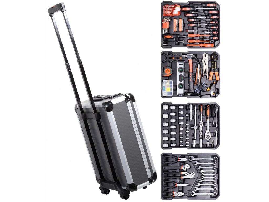 Praktický hliníkový kufr, 186 dílů kvalitního nářadí vyrobeného z chrom-vanadiové oceli (CrV).