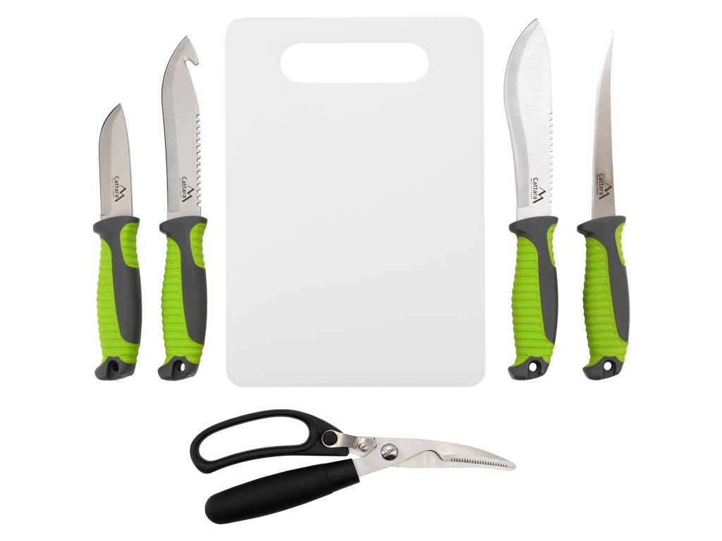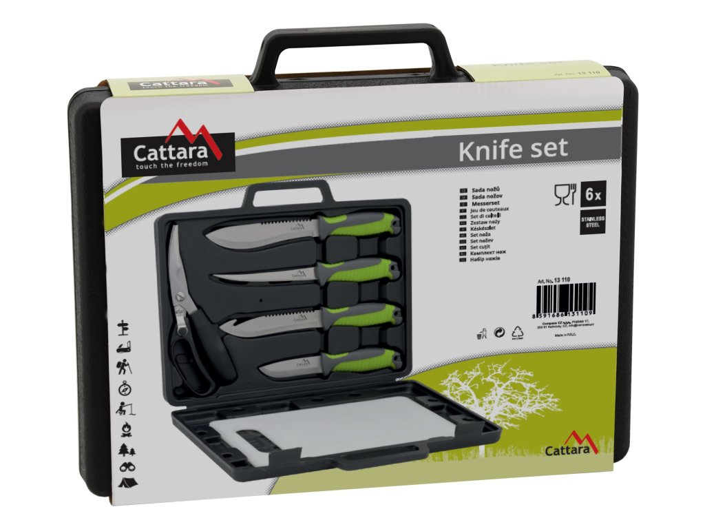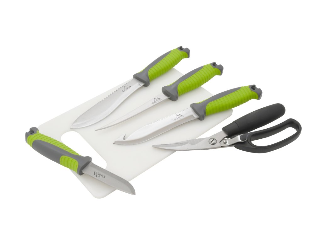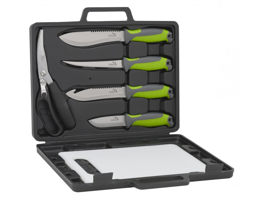 Sada skládající se ze 4 ks nožů, nůžek na drůbež a ryby a prkénka pro pohodlné porcování.