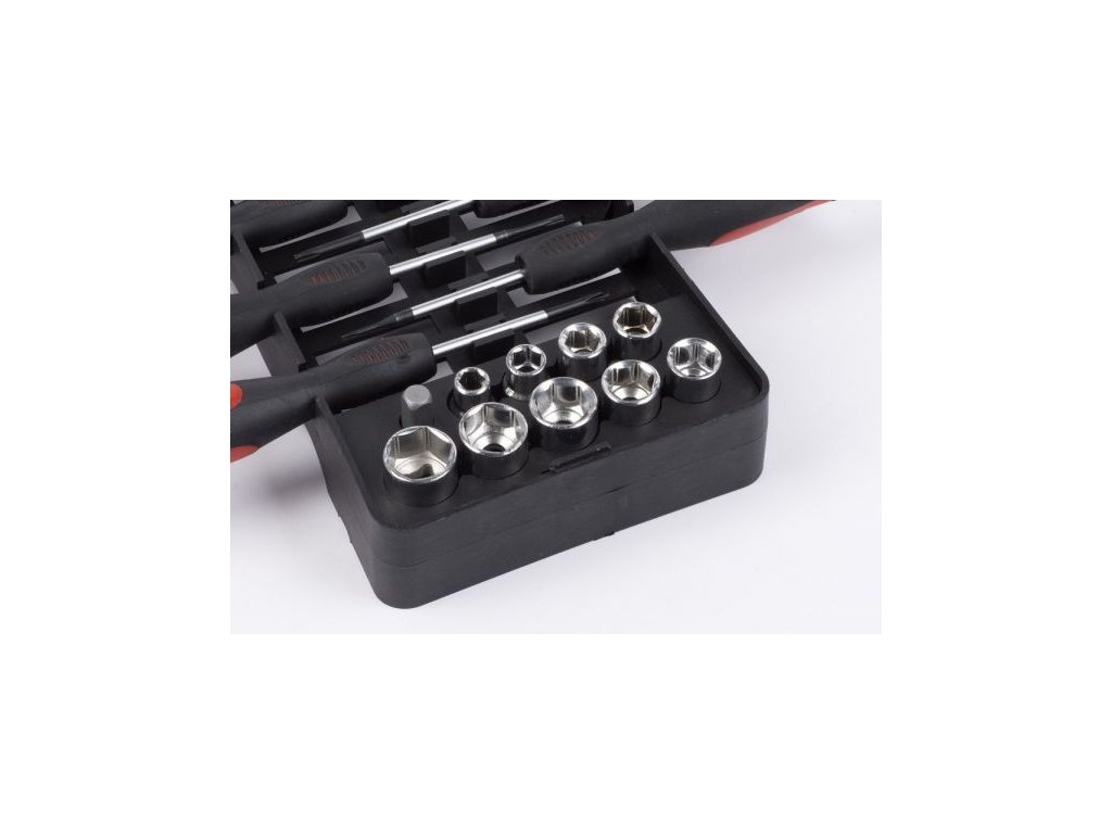 S touto 44dílnou sadou šroubováků se můžete pustit do jakéhokoli projektu zahrnujícího šrouby. Chrom-vanadiové šroubováky jsou přehledně uloženy v praktickém držáku, který lze také zavěsit na zeď. Všechny šroubováky jsou vybaveny magnetickým hrotem a ergonomickou rukojetí, takže můžete snadno namontovat každý šroub.