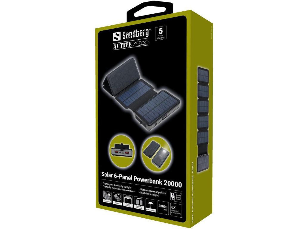 Šestipanelová Powerbanka Sandberg Solar 20000 vám skutečně poskytne veškerý výkon, který potřebujete pro všechna vaše zařízení, a to až na 8 nabití typického smartphonu.