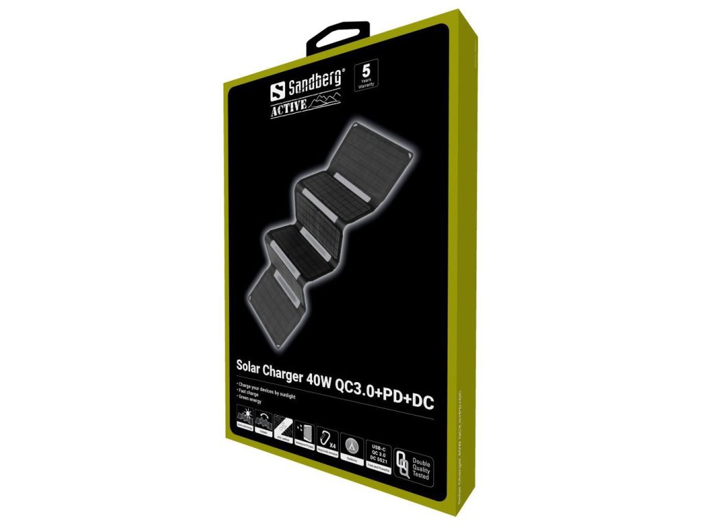 Sandberg Solar Charger 40W je kompaktní solární panel se silným výkonem. Skládací solární panel se rozloží na 6 monokrystalických solárních panelů, což vám poskytne kombinovaný výkon až 40 W. Na ovládacím panelu panelu najdete 3 rychlé porty: