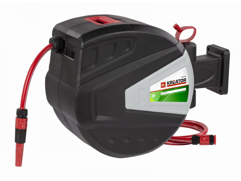 Pokud chcete zalévat celou zahradu bez objemné zahradní hadice, která vám neustále překáží, tento naviják a zahradní hadice KRTGR6717 Kreator je zahradním nářadím pro vás. Co můžete s tímto hadicovým navijákem dělat? Tento hadicový naviják lze snadno připevnit na zeď a připojit ke kohoutku. Ujistěte se, že jej namontujete maximálně 2 metry od kohoutku, protože tak dlouhá je připojovací hadice. Naviják na hadici obsahuje 30 m ½“ zahradní hadici, takže je ideální pro větší zahrady. Pomocí montážního držáku připevněte naviják hadice ke zdi. Zahradní hadice tak bude vždy úhledně uložena a nebude vám neustále překážet. V zimních měsících můžete hadicový naviják odpojit od držáku a snadno jej uložit, díky jeho kompaktní velikosti. Naviják hadice sleduje vaše pohyby a může se otáčet o 180°, čímž zabraňuje ohýbání nebo zamotávání hadice. Díky nízké hmotnosti a praktické rukojeti můžete tuto hadici bez námahy přemístit, například ji uložit na zimu.